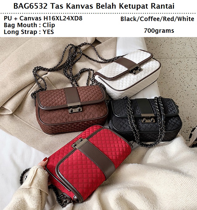 BAG6532 Coffee Tas Kanvas Belah Ketupat Rantai