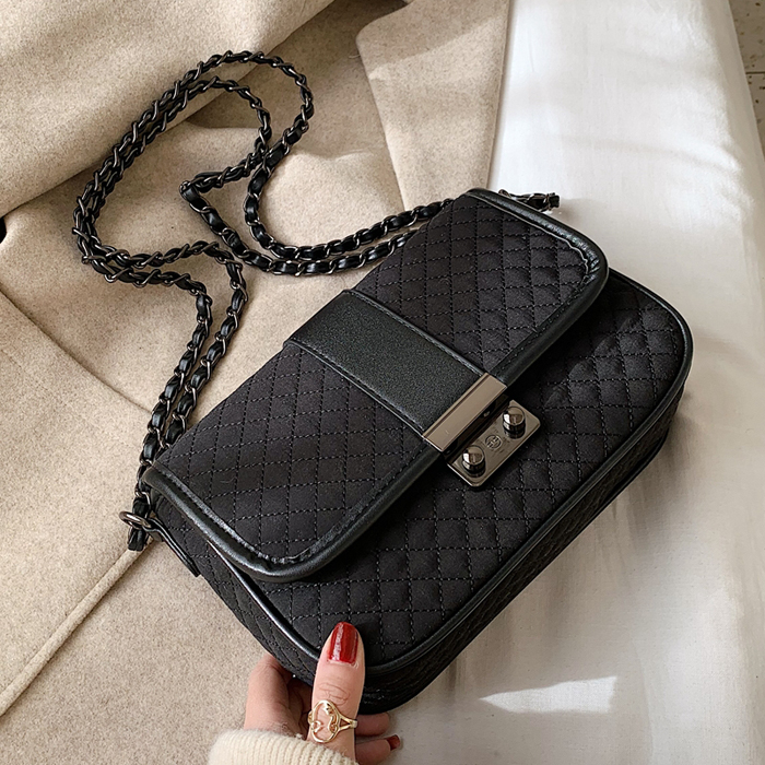 BAG6532 Black Tas Kanvas Belah Ketupat Rantai