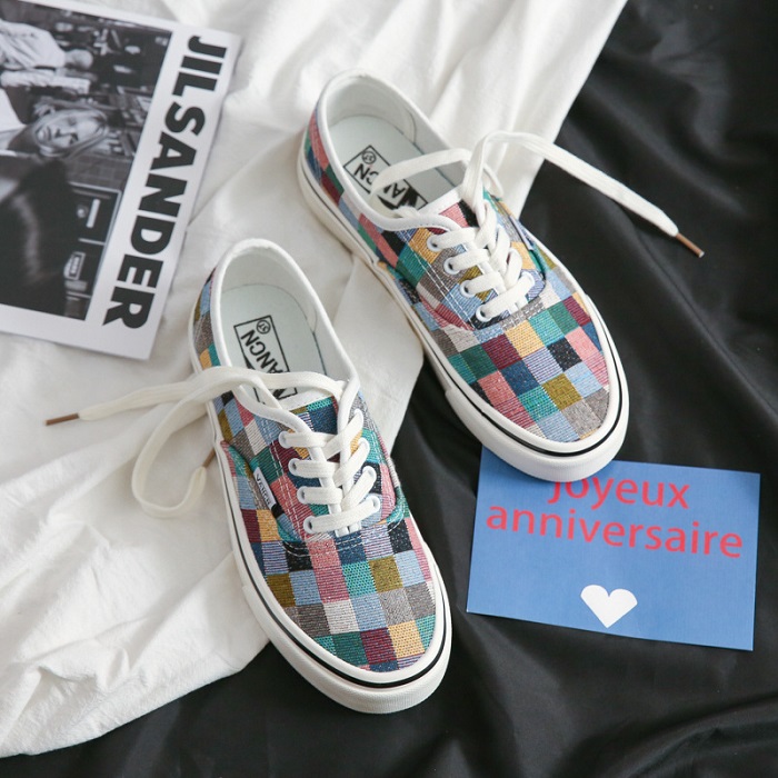 Plaid canvas sneakers (With Box)