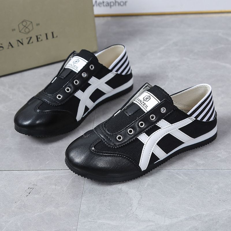 Dari bahan Kanvas mix Kulit Sintetis Premium, model sepatu slip on tanpa tali dan jahitan rapi yang membuat sepatu Onnie tampak lebih casual trendy untuk menemani setiap langkahmu.